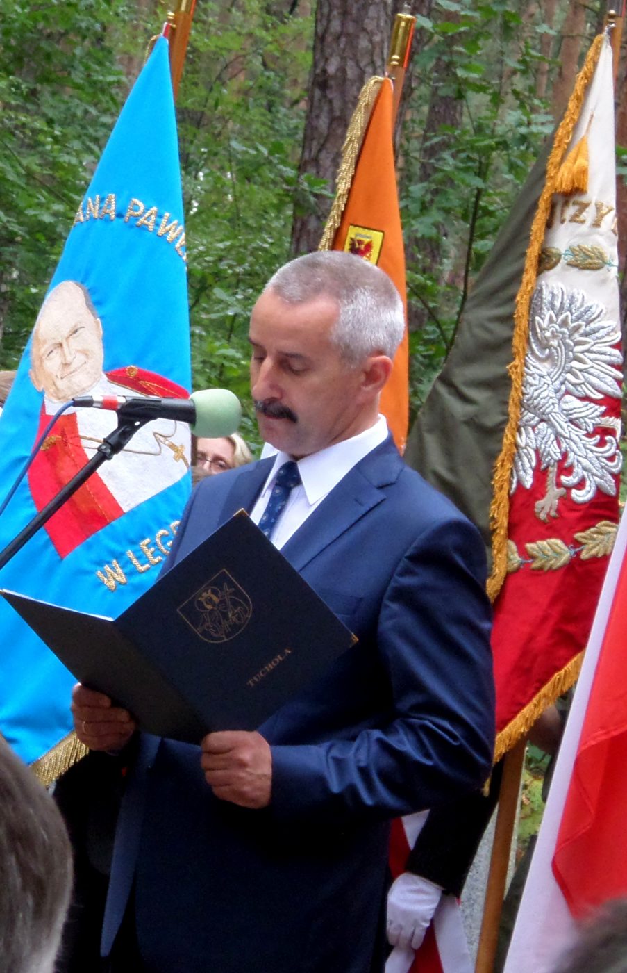 Burmistrz Tucholi, Tadeusz Kowalski, wygłosił poruszające przemówienie nawiązujące do tego, co wydarzyło się w lesie Rudzkiego Mostu 77 lat temu. Burmistrz apelował o zachowanie pamięci o tych, którzy polegli w tym miejscu podczas egzekucji dokonanych przez hitlerowców w 1939 r.