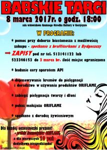 Gminny Ośrodek Kultury w Gostycynie zaprasza na „Babskie Targi”, które odbędą się 8 marca (środa), o godz. 18:00. Uwaga! Liczba miejsc ograniczona.