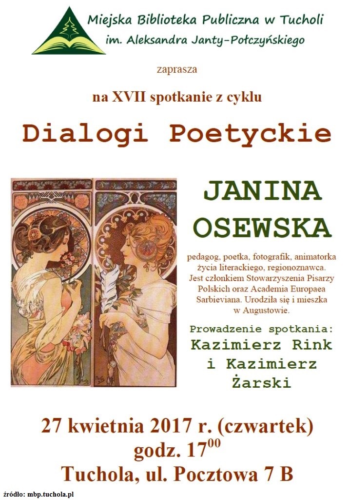 Miejska Biblioteka Publiczna w Tucholi zaprasza na XVII spotkanie z cyklu Dialogi Poetyckie.